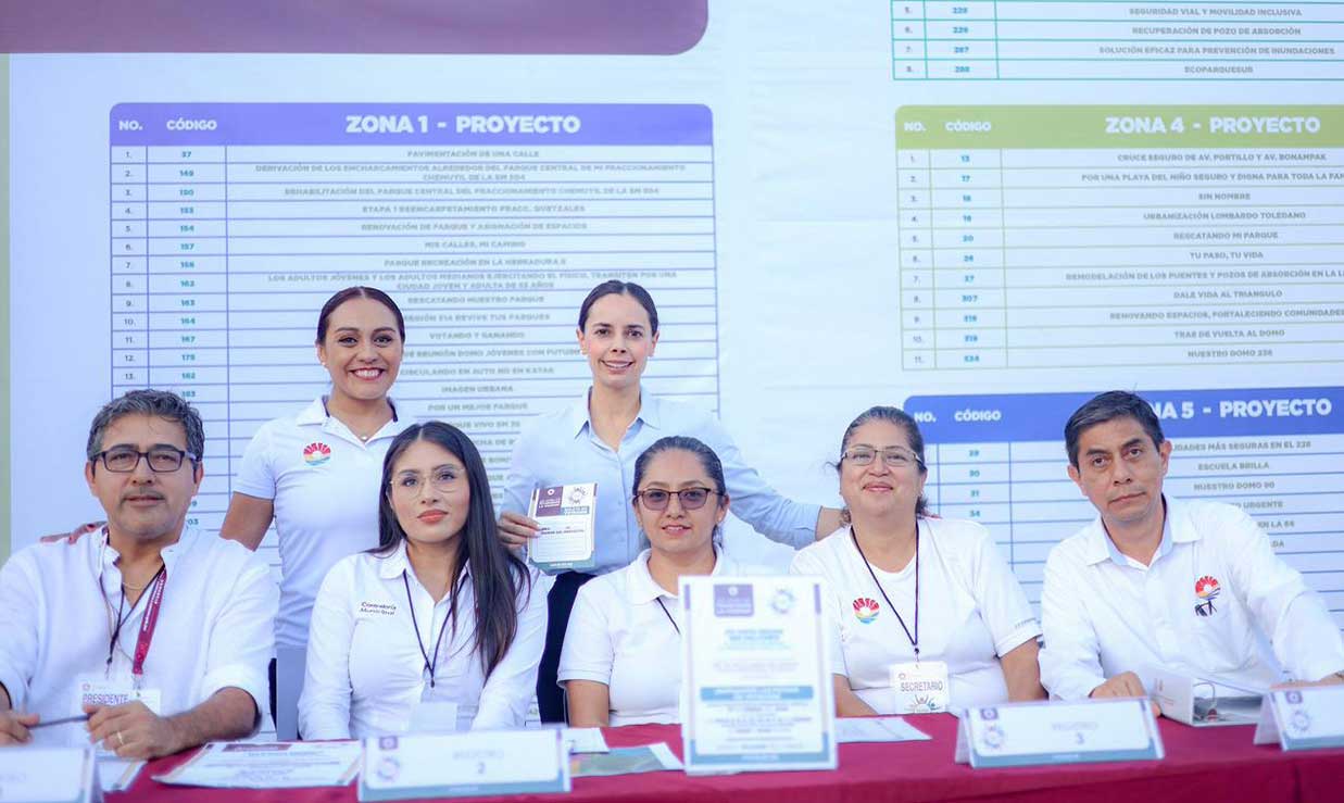 A su vez, explicó que se puede votar en línea, en la página oficial del Ayuntamiento: www.cancun.gob.mx o bien en el portal oficial: https://presupuestoparticipativo.cancun.gob.mx/smdsye/convocatoria/propuestas, para que juntas y juntos sigan construyendo el Cancún que une a la comunidad.