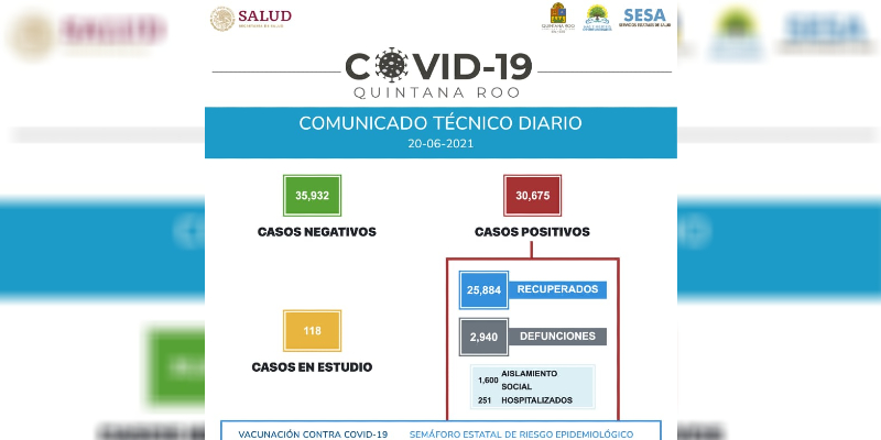 Covid-19: 329 contagios y 14 decesos el fin de semana en Quintana Roo; el total de casos acumulados es entonces de 30 mil 675.