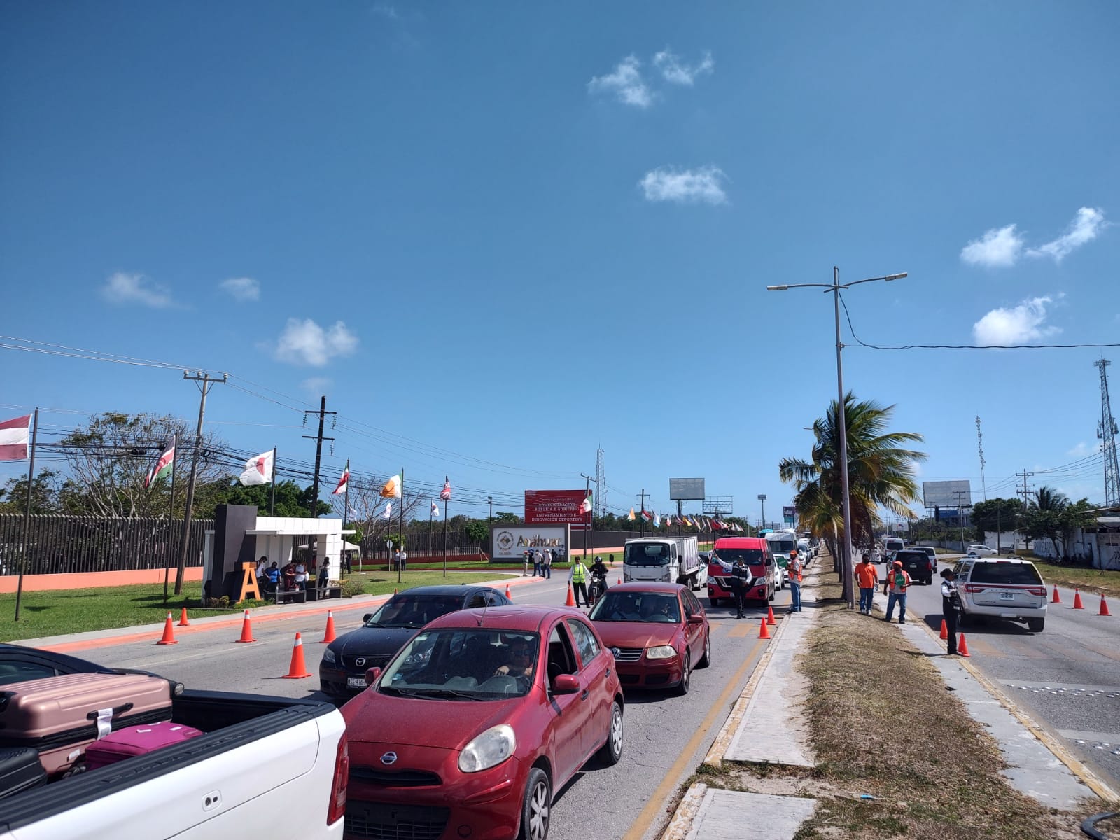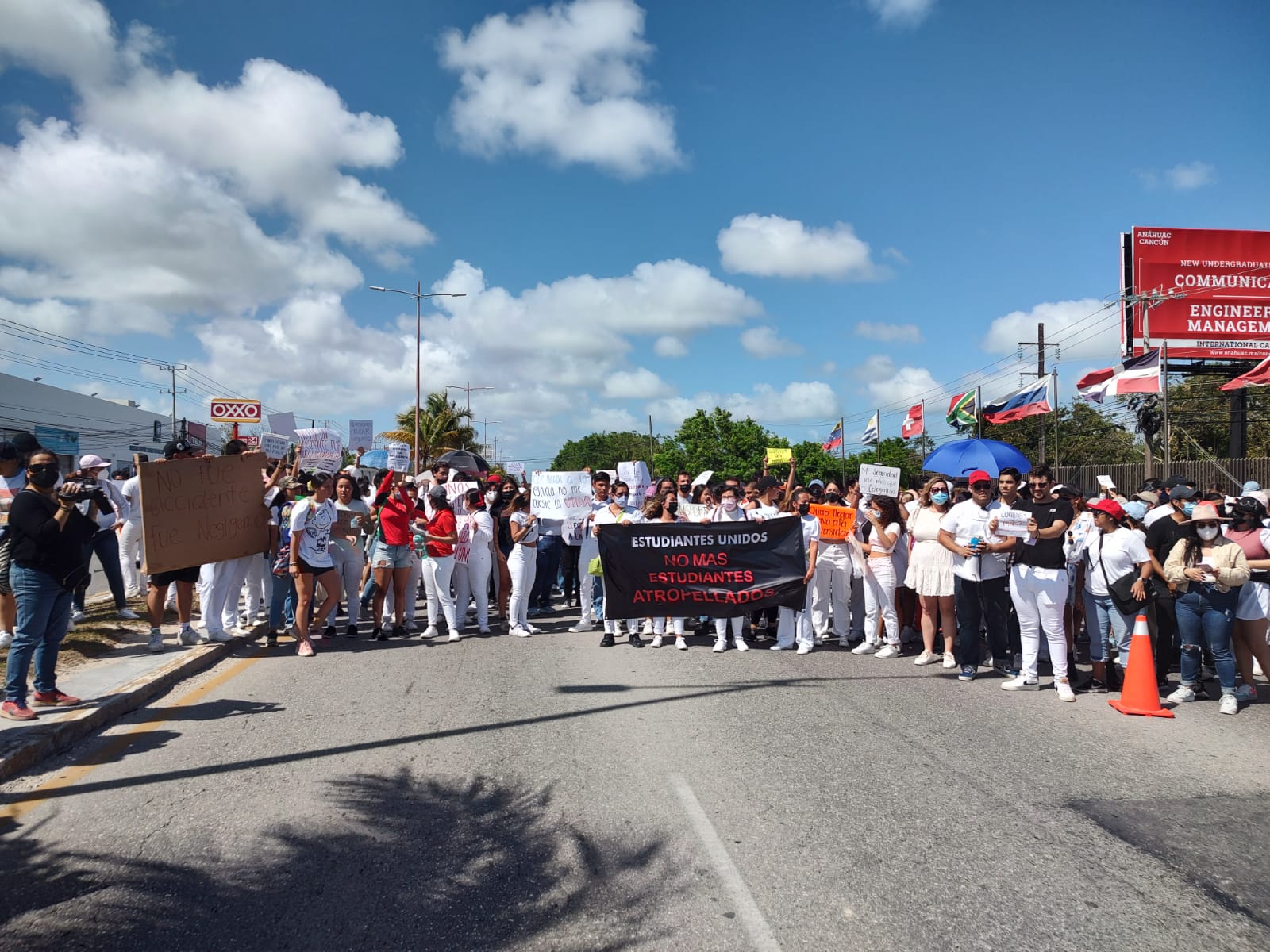Los alumnos universitarios se apostaron frente a las instalaciones de la escuela superior, bloqueando dos carriles de la vía principal, la entrada a la ciudad de Cancún y también hacía el Aeropuerto Internacional de Cancún.