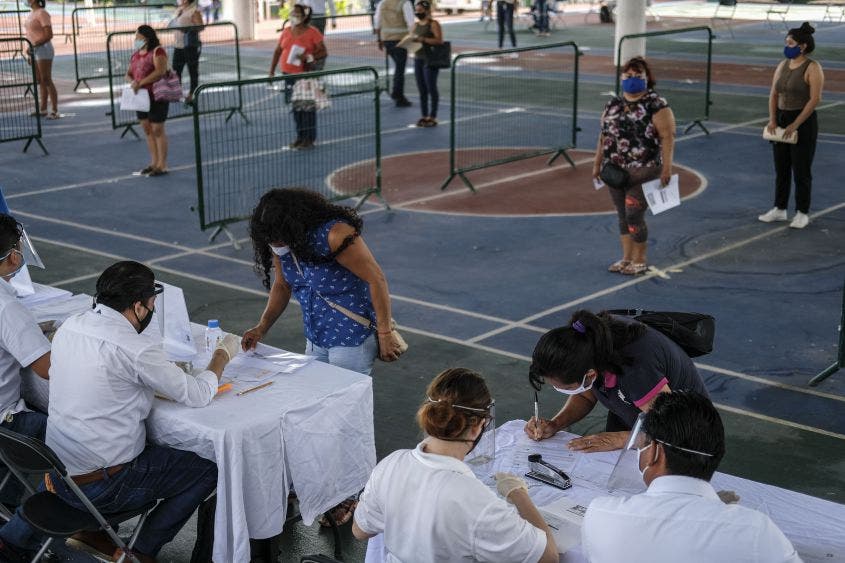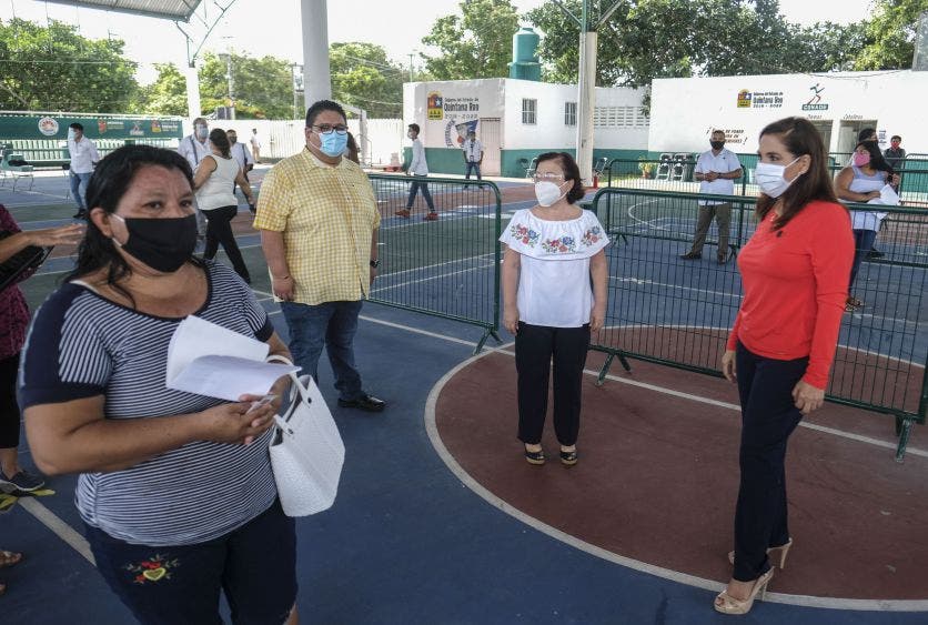 Para corroborar este procedimiento que se lleva a cabo en el gimnasio Jacinto Canek, por turnos cumpliendo todos los protocolos sanitarios y de sana distancia, la Presidente Municipal de Benito Juárez, Mara Lezama, hizo un recorrido en el lugar, acompañada por la Contralora Reyna Arceo Rosado y el Secretario de Desarrollo Social y Económico, Adolfo González José.