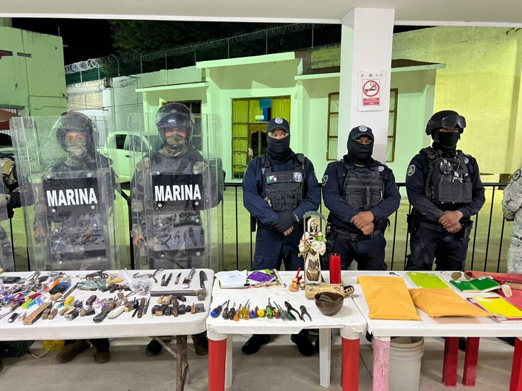 Decomisan droga, armas y celulares durante un cateo en el Cereso de Cancún; autoridades de los tres niveles madrugaron a los internos.