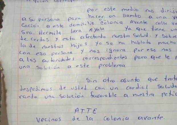 “Ya realizamos el levantamiento de firmas entre todos los que vivimos cerca de la casa donde están alojados los animales, porque no soportamos la fetidez y en algunas viviendas aledañas se filtran las suciedades. Ojalá que las autoridades tomen cartas en el asunto”, refirió la señora María José, vecina de la colonia Avante.