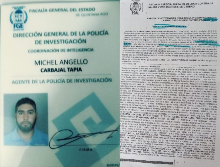 Los antecedentes quedaron registrados en la carpeta de investigación FGE/QROO/CAN/FEDCMYRG/2/535/2021 con el número de caso FGE/QROO/BJ/02/3481/2021, en el que se indica que la ciudadana N, ha sido víctima de violencia familiar por parte del ciudadano Michel Angello Carbajal Tapia.