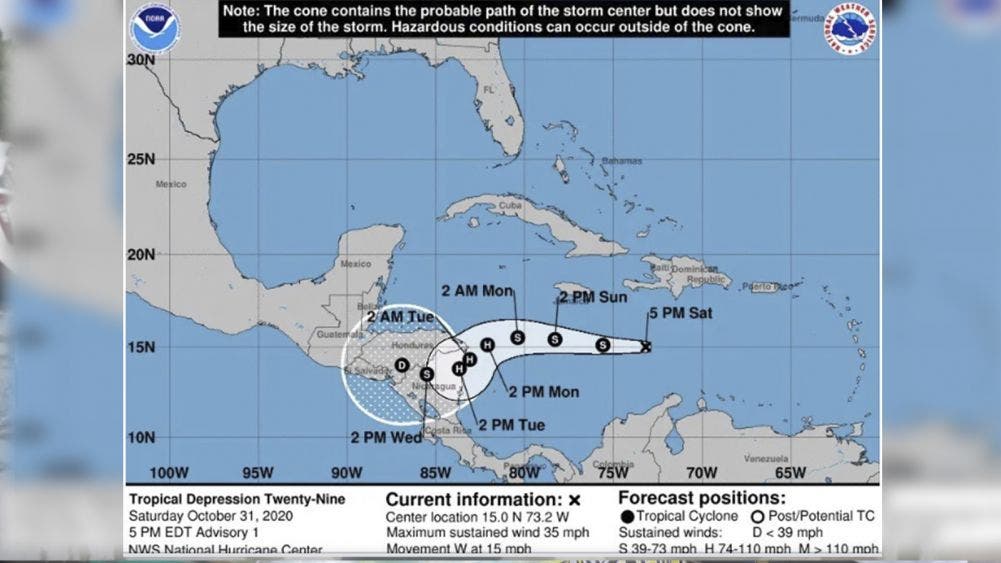 Esta temporada de huracanes ha sido una de las atípicas en la historia de la entidad, pues han sido tantas las depresiones y tormentas, que el listado de nombres para bautizarlas, se agotó y ahora se utilizan las letras del alfabeto griego para hacerlo, de formarse esta, llevaría por nombre «Eta».