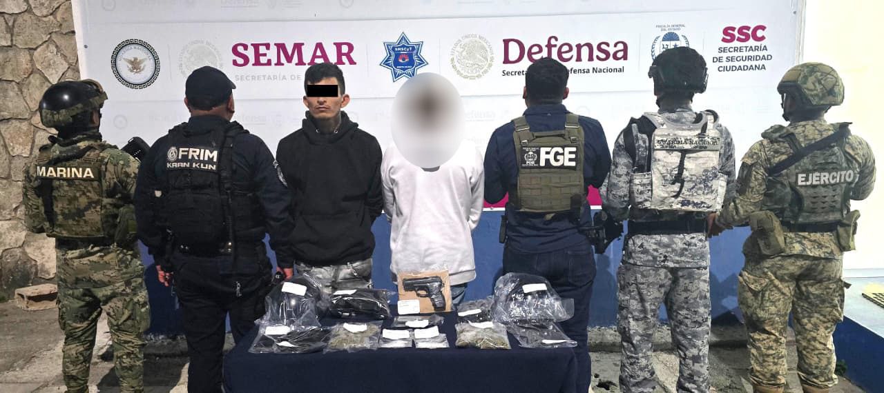 Un operativo coordinado entre corporaciones de los tres órdenes de gobierno derivó en la detención de tres presuntos criminales en Cancún dedicados al narcomenudeo y robos.