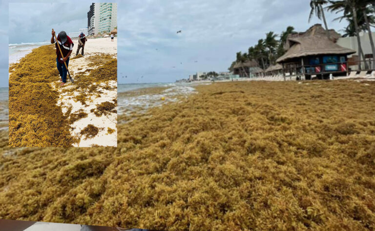 Y las gráficas que circulan en redes sociales, algunas de ellas oficiales, no los desmienten, pues la autoridad municipal de Cancún, se ha limitado a poner a posar para las fotografías a un par de individuos rastrillando en un insondable mar de esta sustancia marina.