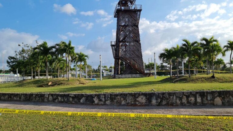 Descubren el cuerpo de una persona fallecida frente a la antigua torre de control ubicada en la glorieta de la avenida Kabah, con Bonampak y la avenida Luis Donaldo Colosio.