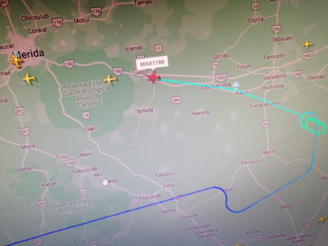 El vuelo MXA1788 que despegó del Aeropuerto Internacional “Felipe Ángeles” (AIFA) a las 08:02 (tiempo del centro del país) tuvo que aterrizar en el Aeropuerto Internacional de Mérida “Manuel Crescencio Rejón”, después de volar por varios minutos en círculos sobre Quintana Roo.