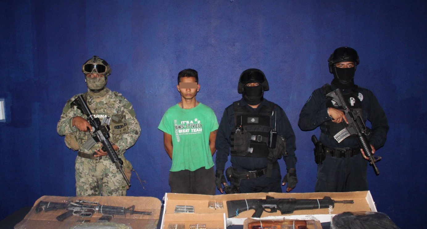 La Secretaría de Seguridad Pública de Quintana Roo, en coordinación con la Secretaría de Marina (Semar), logró la detención de Luis Gerardo “N”, por su presunta participación en delitos contra la salud y Violación a la Ley Federal de Armas de Fuego y Explosivos.