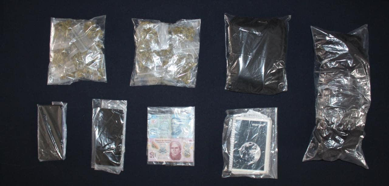 Se les aplicó una inspección física a ambas personas y se les decomisó 30 dosis de vegetal verde con las características de la marihuana, una mochila negra, una mariconera negra, una libreta, dos celulares y dos billetes de diferentes denominaciones.