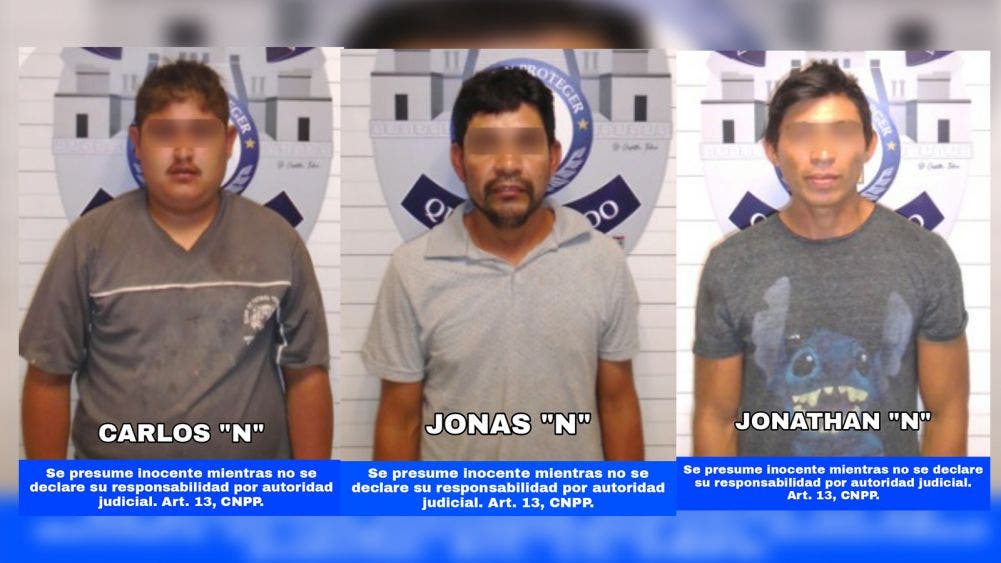 Detiene policía a tres presuntos ladrones en Paseos Kuzamil.- Policías municipales detuvieron la tarde de hoy a tres sujetos que presuntamente habían robado una tienda de conveniencia en la super manzana 111.