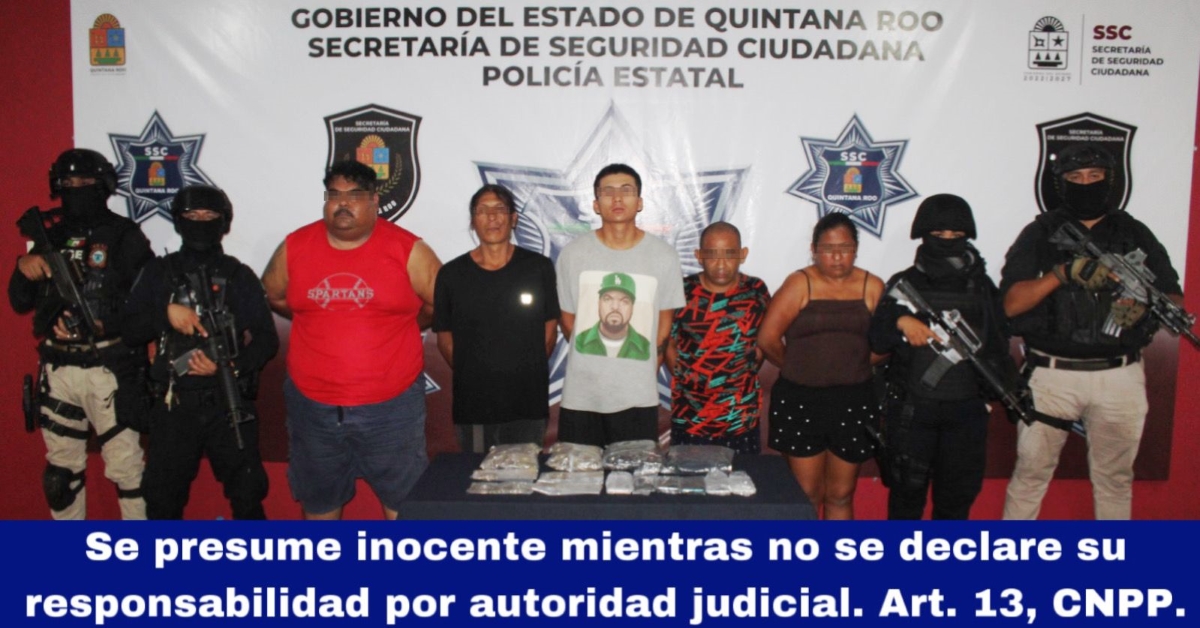 La Secretaría de Seguridad Ciudadana (SSC), puso a disposición de la Fiscalía General del Estado (FGE), a cinco personas por su probable participación en delitos contra la salud en Benito Juárez.