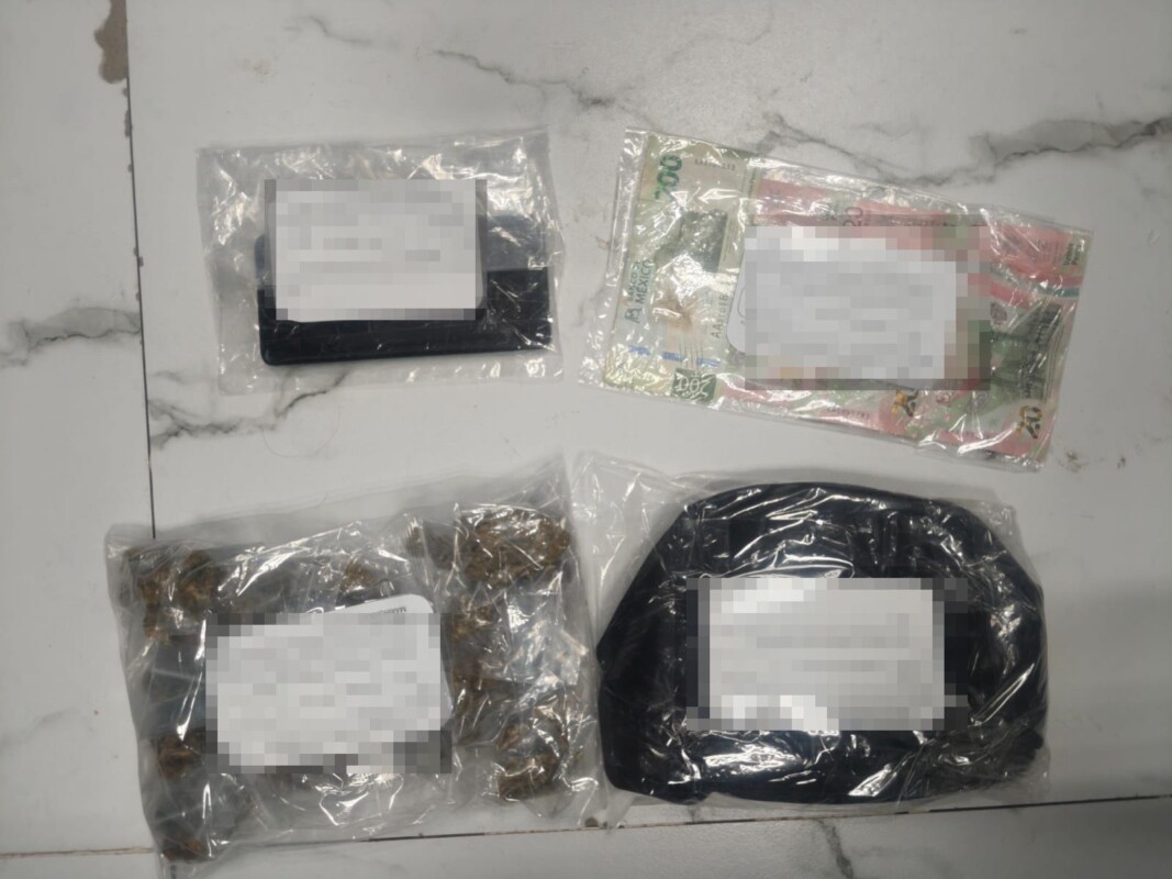 Como resultado, se aseguraron 40 bolsitas de plástico tipo ziploc que contenían vegetal verde y seco con características similares a la marihuana; 220 pesos en efectivo en distintas denominaciones; una mariconera color negro; un teléfono celular; y una motocicleta marca Italika, tipo DM200, color negro, sin placas de circulación, la cual contaba con reporte de robo con fecha 12 de diciembre de 2025.