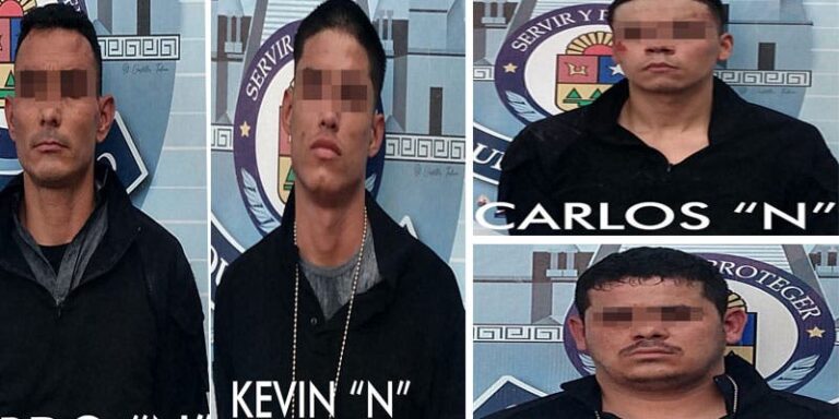 Por tal motivo y ante dicho señalamiento, se procedió a realizar la detención de Octavio “N”, Ricardo “N”, Carlos Iván “N” y Kevin Hazael “N”, por su probable participación en los delitos de secuestro, portación de armas de fuego, usurpación de funciones públicas y lo que resulte, quedando a disposición de la autoridad correspondiente. Cabe señalar que la víctima fue atendida por las unidades médicas.