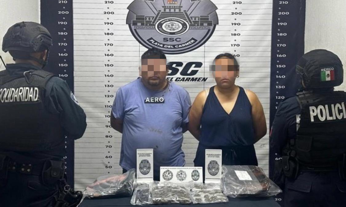 Detienen a pareja con droga en filtro de seguridad en Playa del Carmen; a Santos “N” y Leslie “N”, les aseguraron diversos narcóticos.