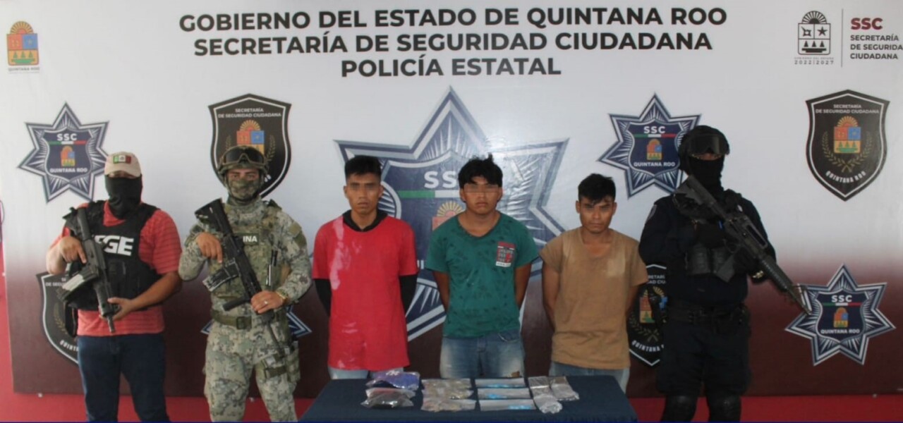 Detienen a tres sujetos con droga en la delegación Alfredo V. Bonfil; les decomisaron varias dosis de mariguana y cristal.