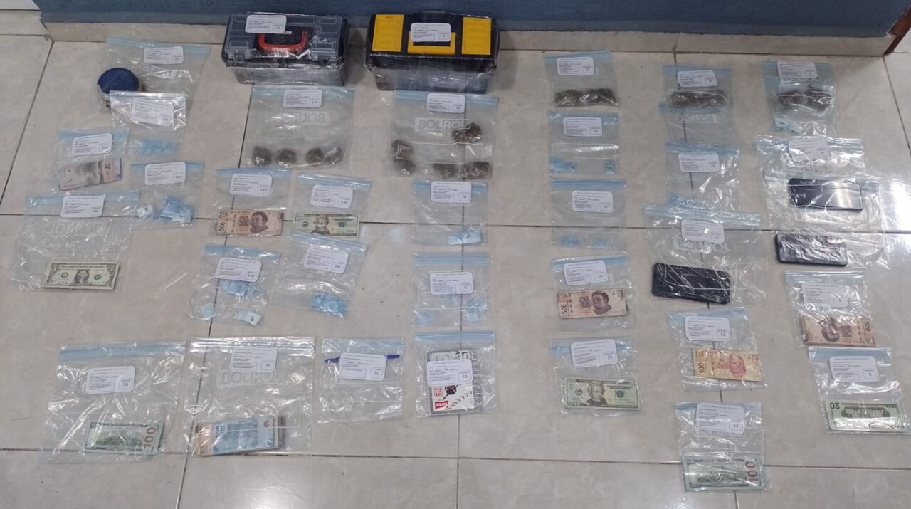 Los detenidos tenían diversas dosis de hierba seca, polvo blanco y al parecer cristal, así como pesos mexicanos y dólares.