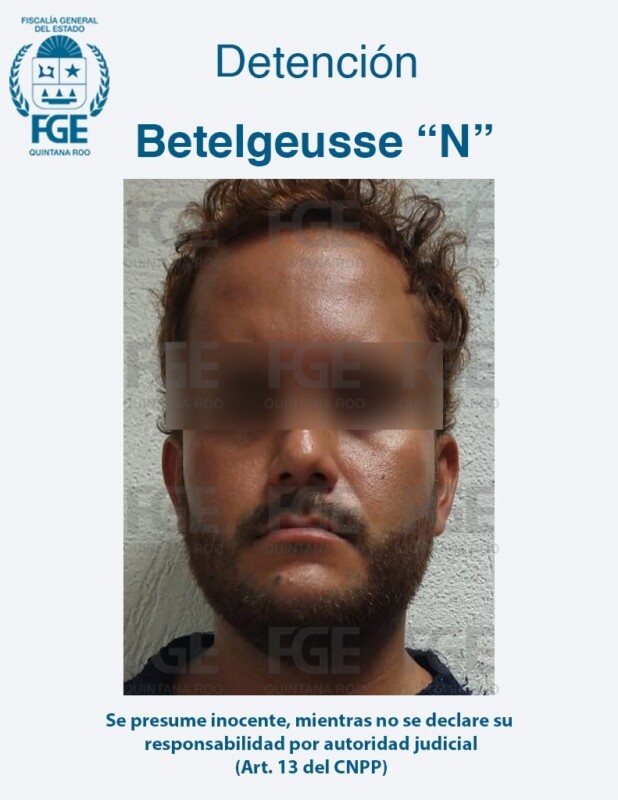 El tercer sujeto fue aprehendido en el municipio de Solidaridad (Playa del Carmen) y responde al nombre de Betelgeusse “N”, su captura fue solicitada por la Fiscalía General de Chiapas.