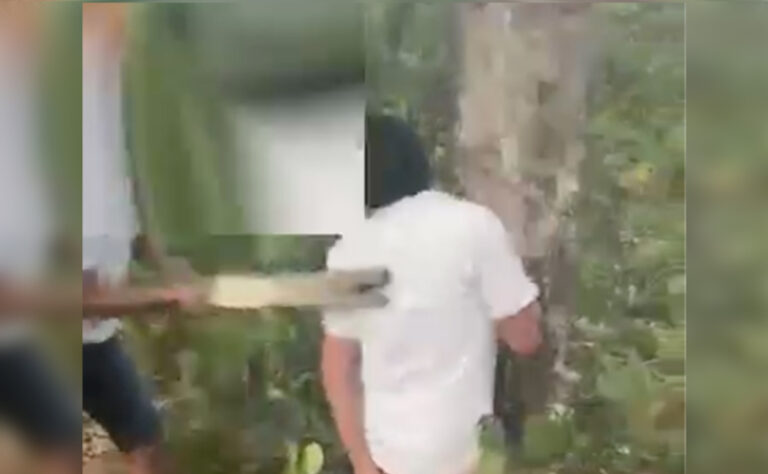 Acto seguido, un par de individuos proceden a castigarlo, «tableándolo» en los glúteos y la espalda, mientras uno de ellos dirige un mensaje a los taxistas de este sindicato.