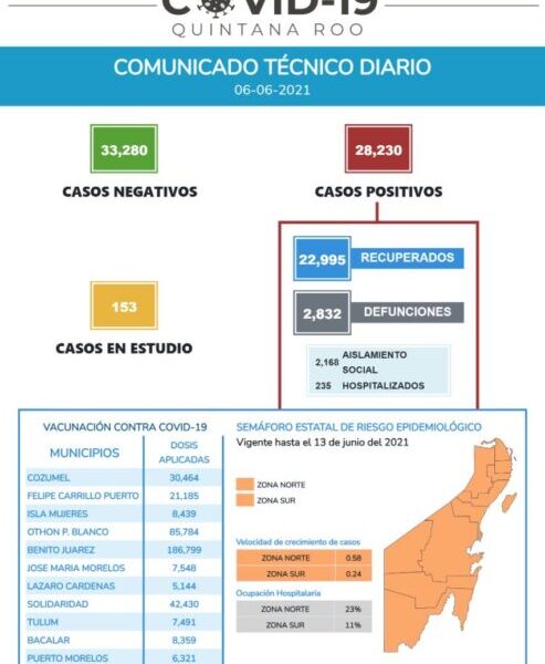 Cancún.- Este domingo 06 de junio cuando toda la población se avocó a la jornada electoral 2021, el COVID 19 no descansó, pues la enfermedad se mantuvo presente entre la población, en los hospitales hogares e incluso en las calles.