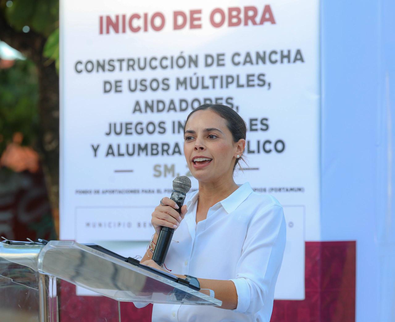 Con gran entusiasmo la Presidenta Municipal, Ana Paty Peralta, dio el banderazo de inicio de obra de la construcción de la cancha de usos múltiples, andadores, juegos infantiles y alumbrado público de la Supermanzana 200, Fraccionamiento Haciendas Real del Caribe, un proyecto que fue propuesto, votado y seleccionado por las y los vecinos a través del Presupuesto Participativo 2024 y el cual viene a sumar las mejoras de la edición 2023.