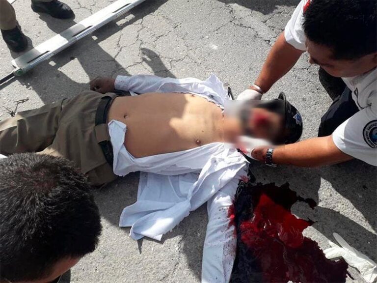 Una vez ahí encontraron a dos agentes tirados y en un estado grave de salud, por lo cual permitieron que paramédicos los trasladaran de emergencia al IMSS de la avenida Coba, en donde minutos después se notificó que el elemento de nombre Santiago M. B., había fallecido, mientras que Romel H. P. Se encontraba estable, a pesar de las lesiones que presentaba.