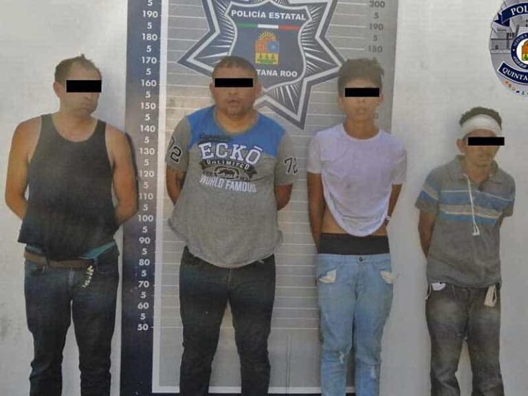 Por lo anterior se realizó la detención de Eduardo “N” de 41 años, Leonardo “N” de 40 años, José Braulio “N” de 41 años y Melquicob “N” de 18 años de edad, quienes quedaron a disposición del Ministerio Público del Fuero Común por el delito de robo a casa habitación, daños y lesiones, derivado de que los detenidos frenaron su vehículo provocando que la unidad policial se impactara contra éste.