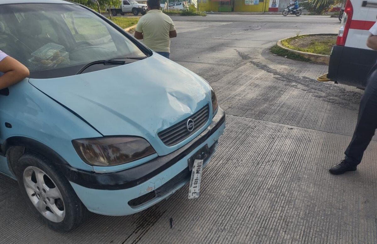 Madre e hija que transitaban en una motoneta color azul fueron impactadas por el conductor de una camioneta van, en el cruce de Arco Vial y Ciudad Natura, en la Supermanzana 260 de Cancún.