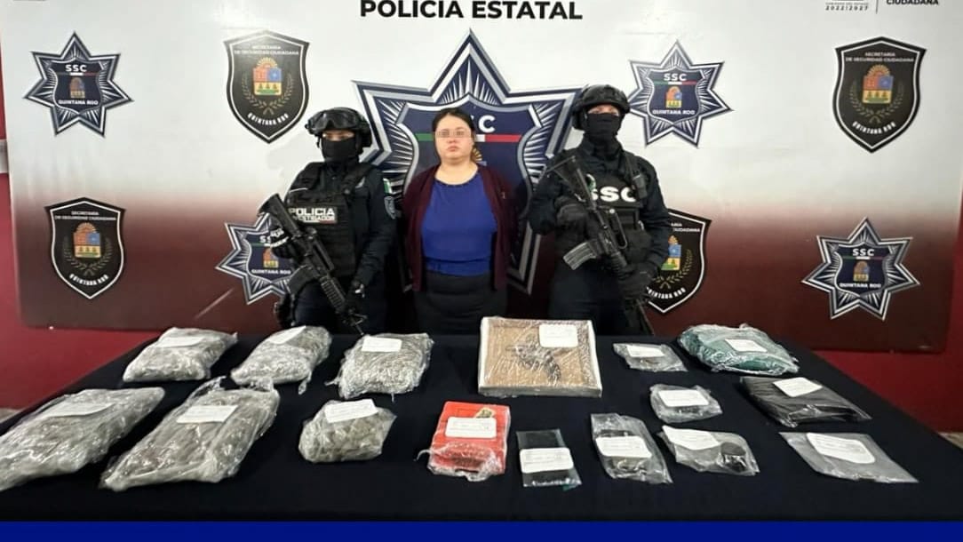 En Cancún detienen a mujer en posesión de drogas y un revólver