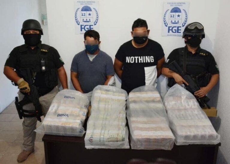 En Cancún detienen a tres por robo millonario en camión blindado; agentes recuperan el dinero y el vehículo del traslado de valores con el botín.