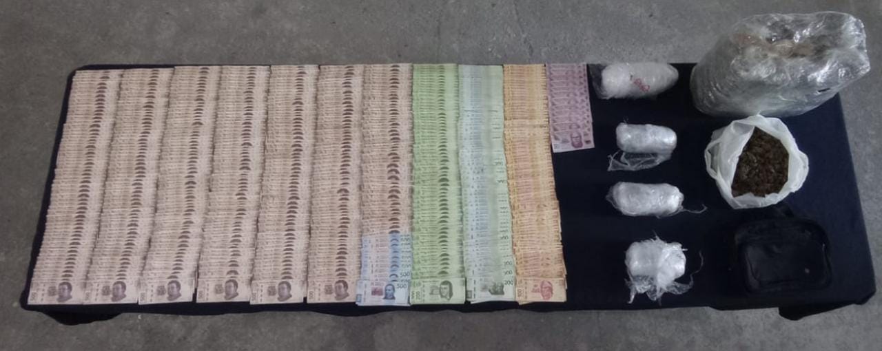 Al entrevistarse con los tripulantes, el canino realizó un marcaje positivo a dicho automóvil, por lo que les solicitaron una revisión, asegurándoles aproximadamente $262,100.00 en efectivo, teléfonos celulares, paquetes de vegetal verde y una bolsa con sustancia similar a la marihuana.