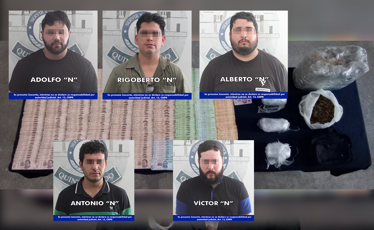 Fue el pasado 09 de agosto, cuando la Unidad Canina de la Policía Quintana Roo realizó la detención de Víctor “N”, Antonio “N”, Alberto “N”, Rigoberto “N” y Adolfo “N”, por su probable participación en delitos contra la salud.