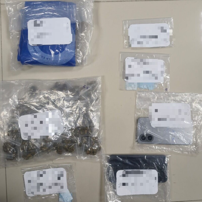 Durante la inspección, los agentes aseguraron diversas dosis de presuntos narcóticos, entre ellos bolsas con hierba seca con características de marihuana, así como envoltorios con sustancias que corresponderían a cocaína, “piedra” y cristal; también se le decomisaron teléfonos celulares y una bolsa.