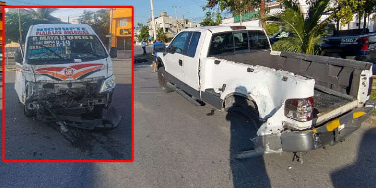 Las unidades involucradas fueron una Nissan Urvan, color blanco con naranja, placas A931TME, número económico 286, Ruta 19 y una camioneta Ford, modelo lobo, color blanco con matrícula TA 6140H de Quintana Roo.