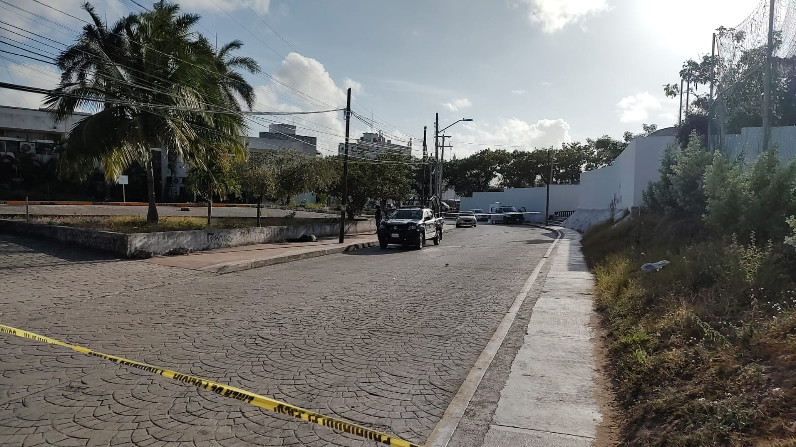 Una llamada anónima al numero de emergencias 911, reportó que un cuerpo se hallaba tirado a un costado de la calzada junto al edificio gubernamental, por lo cual elementos de la Policía Quintana Roo se desplazaron hasta el lugar.
