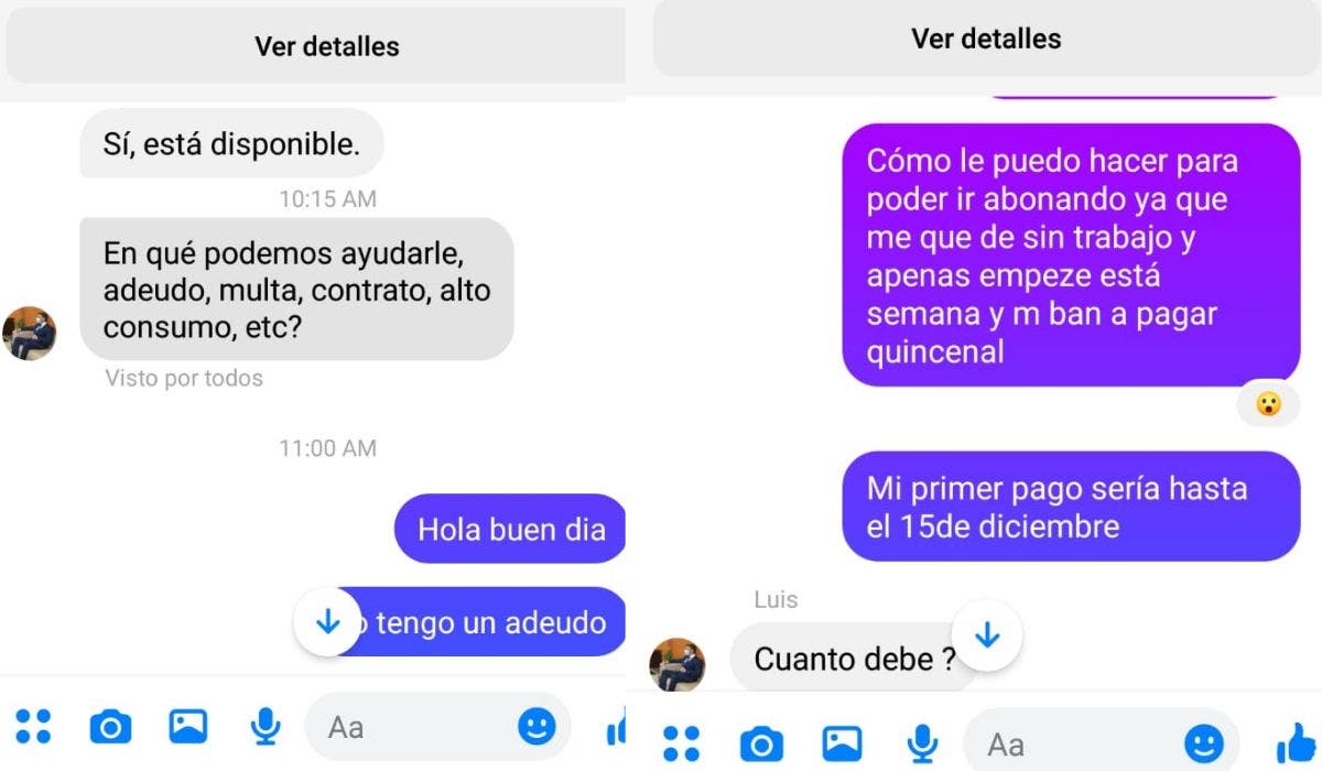 Después de enviar mensaje a este grupo que aparece en la sección de market place en esta red social, el presunto trabajador de la CFE te pregunta cuál es tu situación y en qué pueden ayudarte.
