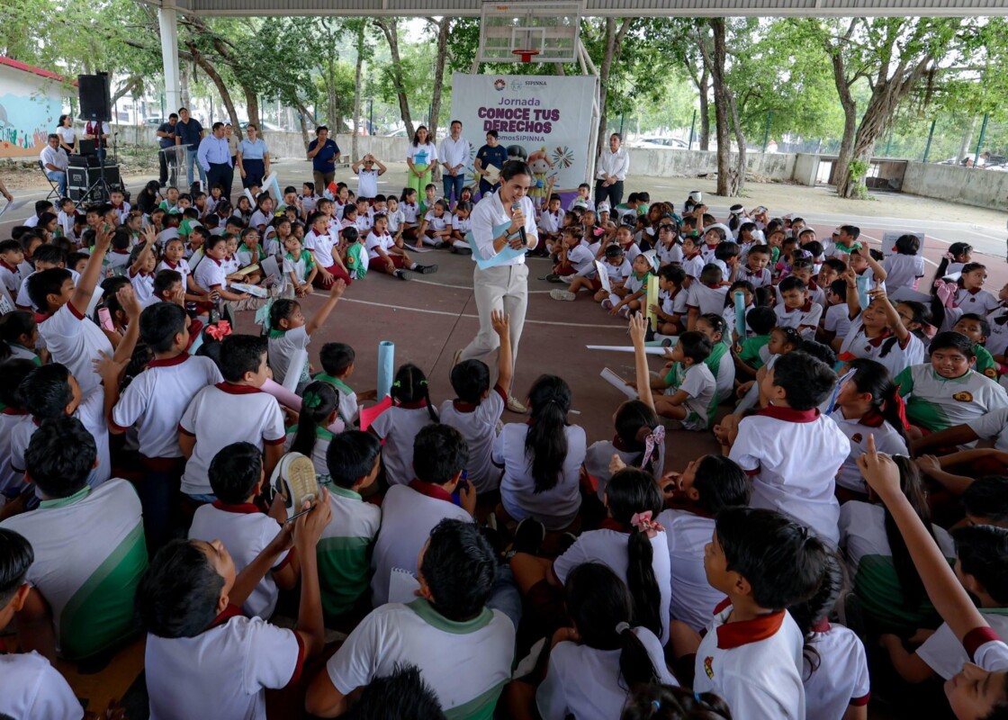 La Presidenta Municipal, Ana Paty Peralta, encabezó la jornada “Conoce tus Derechos”, impulsada mediante el Sistema Municipal de Protección Integral de Niñas, Niños y Adolescentes (SIPINNA) Benito Juárez, para más de 300 estudiantes de la escuela primaria urbana federal “Ek Balam”, a quienes enseñó a cuidar y defender sus derechos para vivir una vida libre de violencia.