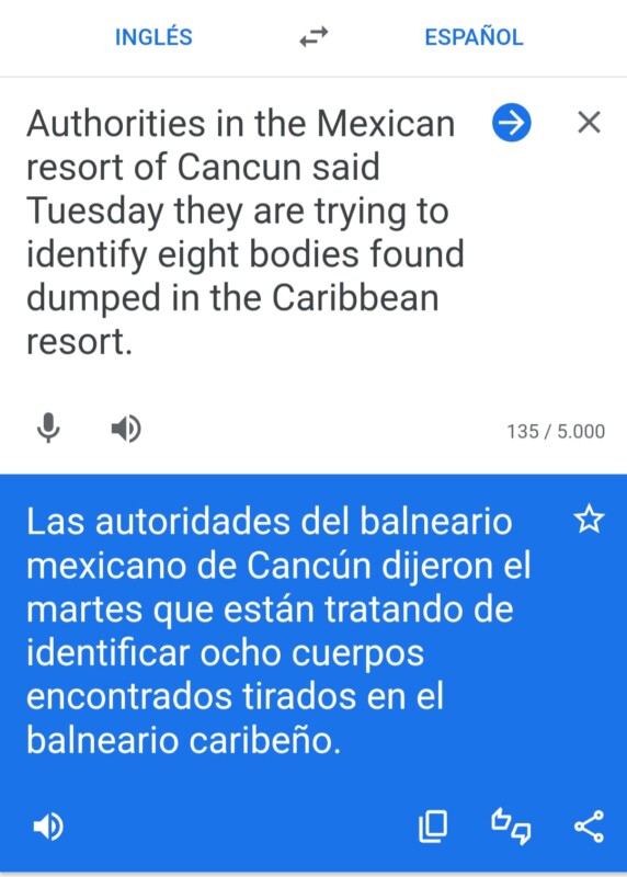Pero esta información ha sido malinterpretada por medios locales basados en una mala traducción de la nota original, dando a entender que los ocho cuerpos fueron hallados en un centro hotelero, lo cual no corresponde a la realidad, señala la Fiscalía quintanarroense.