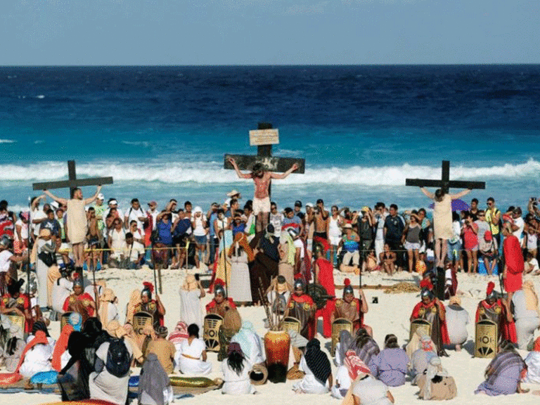 Cancún, Quintana Roo.- Un elenco de 250 actores ultima detalles para la representación, por décimo año consecutivo, del Viacrucis Viviente en Playa Delfines, en la que se espera la asistencia de unas 7 mil personas.