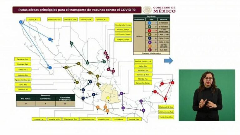 Las vacunas llegarán a bordo de un avión tipo Hércules con matrícula 3611 de la Secretaría de la Defensa Nacional (Sedena), y según el itinerario de viaje saldrá de la Base Aérea Militar (BAM) número 19 en la CDMX.