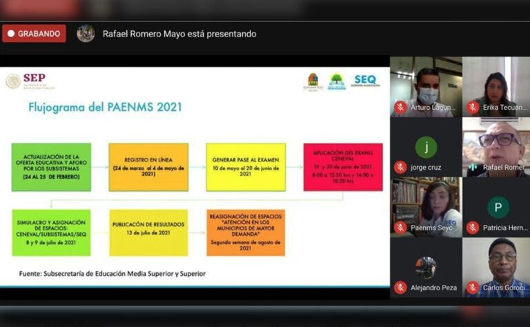 Rafael Romero Mayo, subsecretario de Educación Media y superior en la entidad, señaló que, los pasos a seguir pueden consultarse directamente la página de Face Book de la SEQ, aunque adelantó que después de crear una cuenta en el portal, sólo hay que seguir 6 pasos, editar el perfil, llenar un cuestionario de contexto social, colocar las opciones educativas de su preferencia, descargar la ficha de depósito para el pago del examen que tiene un valor de $260 pesos, confirmar el registro y descargar el pase al examen, dijo que este 2021 en la entidad se estima que egresen 25 mil 265 alumnos de secundaria, en tanto que la oferta educativa en el estado es de 23 mil 480 espacios físicos, la mayoría en el sur de la entidad, mientras que en casos como Cancún existiría un déficit de casi 3 mil alumnos que tendrían que optar por otras opciones.