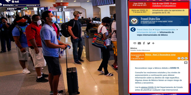 El Departamento de Estado de los Estados Unidos actualizó su alerta de viaje para México, en la que pide a sus ciudadanos reconsiderar viajar al país, debido a los elevados índices de contagio de Covid-19, a la violencia e inseguridad.