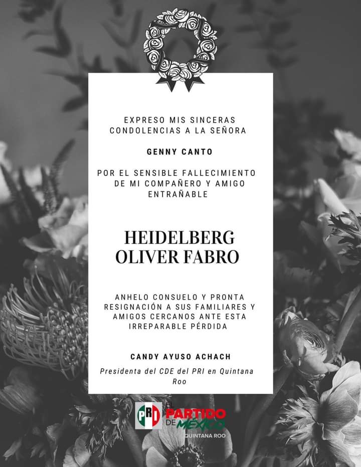 La dirigente estatal del Partido Revolucionario Institucional (PRI), en donde militaba el ahora extinto, “Candy” Ayuso Achac, manifestó sus condolencias a nombre de los priistas de Quintana Roo.