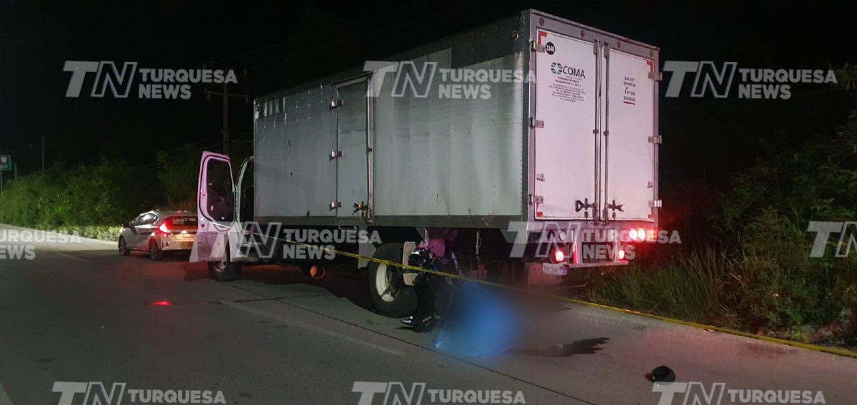 Un motociclista, hasta el momento no identificado, perdió la vida la madrugada de hoy viernes 23 de junio, luego de chocar contra la parte trasera de un camión de carga al final de la avenida José López Portillo de Cancún.