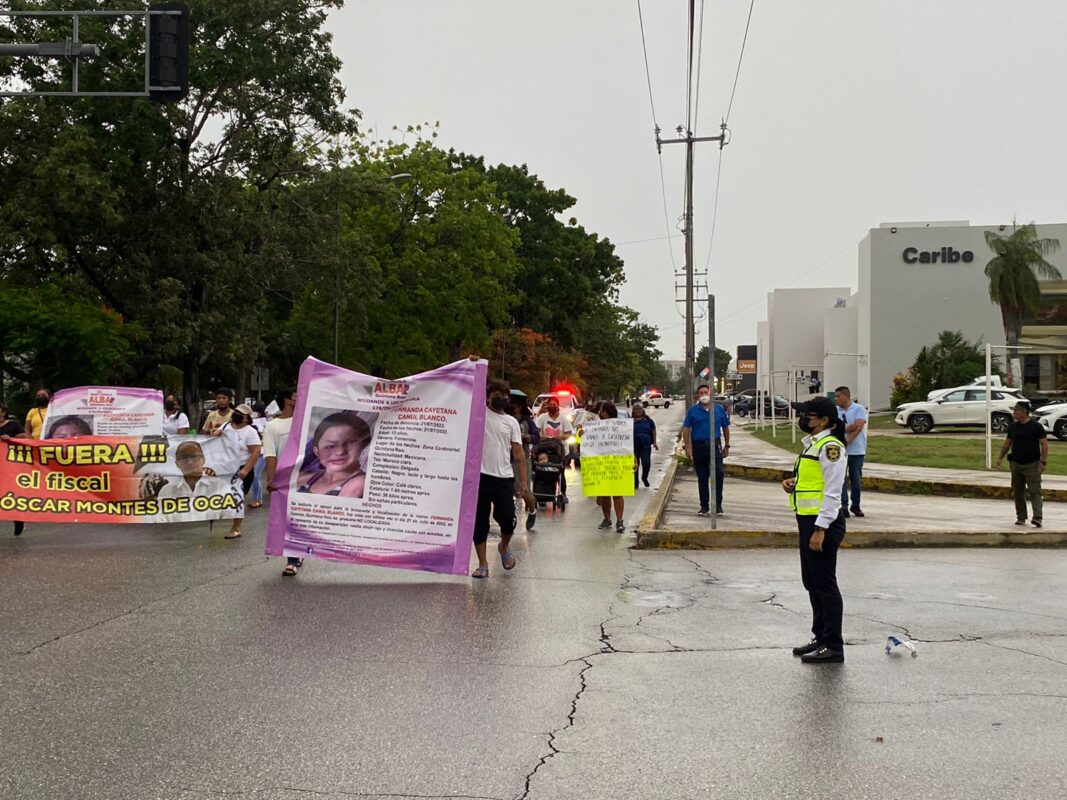 Desde el Cebiche, el grupo de personas caminó sobre la avenida Cobá hasta llegar a la avenida Kabah para retornar luego hasta las instalaciones de la dependencia de justicia, donde arengaron a las autoridades a dar resultados en esta búsqueda.