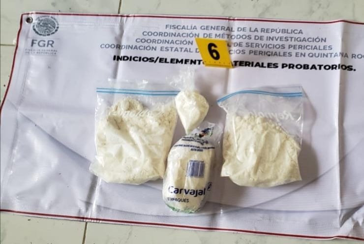 En el primero de ellos se efectuó el cateo en un inmueble ubicado en la privada Francisco Villa, Supermanzana 308, manzana 170, del Ejido Alfredo V. Bonfil, donde se detuvo a Patricia “B” y Nahúm “M” y se aseguraron; tres estructuras metálicas, conocidas como estrellas poncha llantas, cuatro bolsas que contenían marihuana con un peso de cuatro kilos, 232 gramos, dos bolsas con polvo de cocaína con un peso de 16 gramos, una bolsa de plástico que tenía en su interior pasta de cocaína con un peso de 250 gr, así como 35 cartuchos útiles.