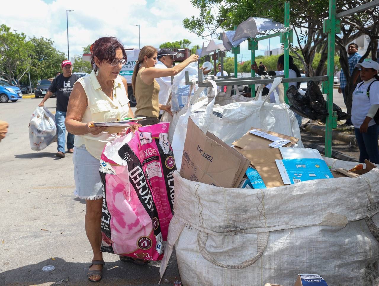 Como cada dos veces al mes, en esta ocasión se habilitaron los siete puntos de acopio en la ciudad ubicados en la Explana de la Secretaría de Educación de Quintana Roo (SEQ), Pabellón Cumbres, Conalep II, Walmart Polígono Sur, estacionamiento de la Gran Plaza, estacionamiento de Chedraui Lak’in y el estacionamiento del Centro Comercial Urban Center Cancún, en donde decenas de familias y empresas acudieron a depositar los materiales previamente separados.