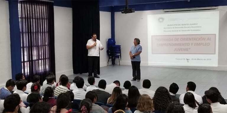El director general de la dependencia, Enrique González Contreras, destacó que el objetivo de este programa es fomentar el empleo para la inserción de jóvenes en el ámbito laboral. “En esta plática de Jornada de Orientación al Emprendimiento y Empleo Juvenil se les informa a los estudiantes cómo se encuentra el mercado laboral en México, Quintana Roo y Cancún, posteriormente se les orienta cómo conseguirán un empleo y en cuanto tiempo”, citó.