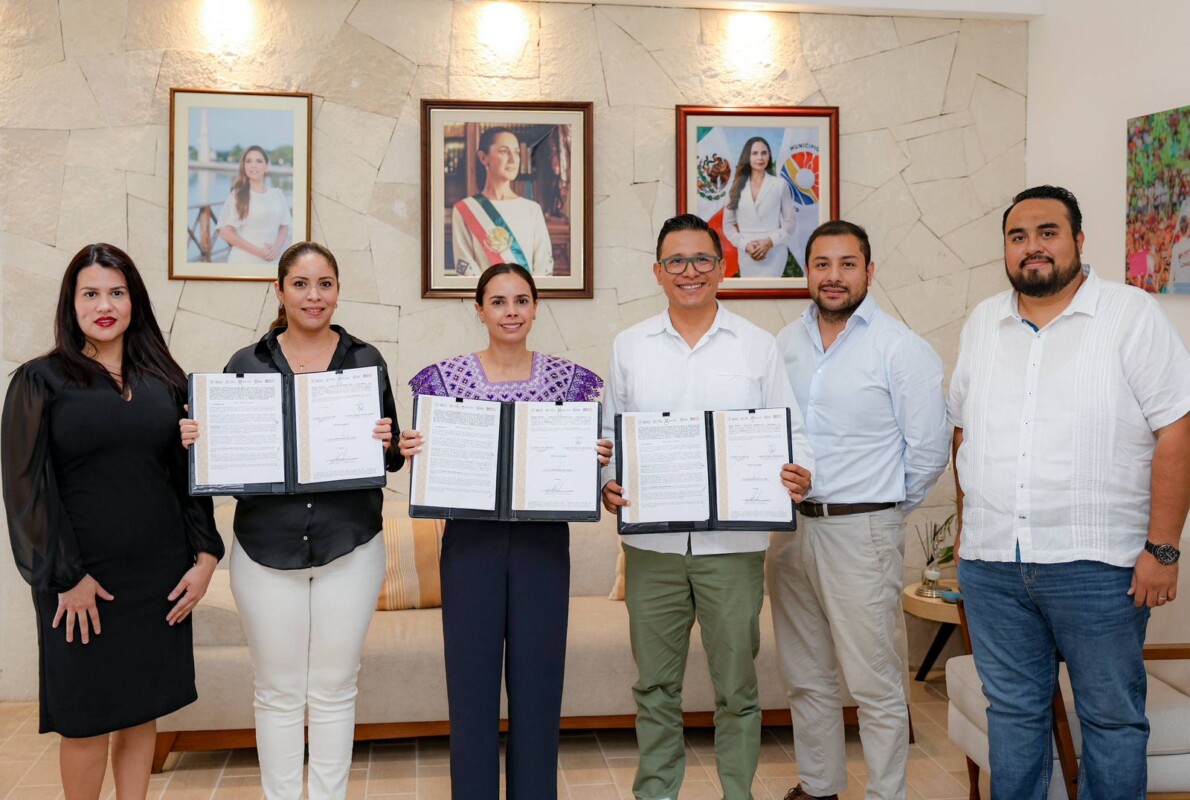 “Estamos llevando a cabo la firma de un convenio muy importante para la protección de todas las mujeres emprendedoras a través de PRODECON y el IMM, también con el acompañamiento de Derechos Humanos”, aseguró la Alcaldesa, después de llevar a cabo la rúbrica junto al delegado coordinador del sureste de la institución federal, Wilfrido Luliel Lomelí López y la directora general del IMM, Miroslava Andrea Reguera Martínez.
