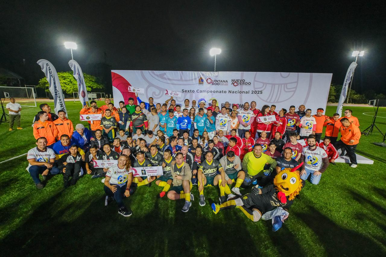 Cancún.- Con la participación de 120 jugadores con síndrome de Down, distribuidos en 12 equipos provenientes de Guatemala y de siete estados del país, la gobernadora Mara Lezama Espinosa inauguró la sexta edición del Campeonato Nacional de Futdown Cancún 2025, que por cuarto año consecutivo se realiza en esta ciudad.